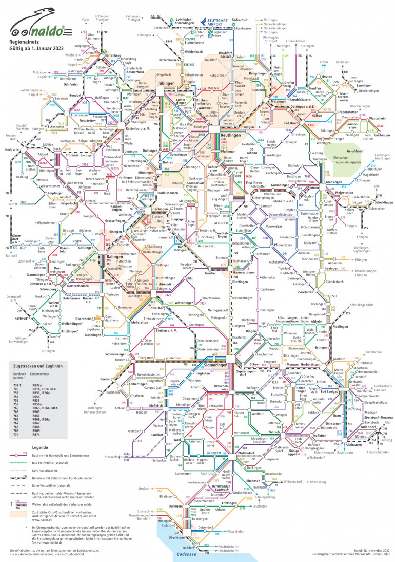 Der Netzplan zeigt die Verbindungen im gesamten naldo-Gebiet, vom Bodensee bis zum Flughafen Stuttgart